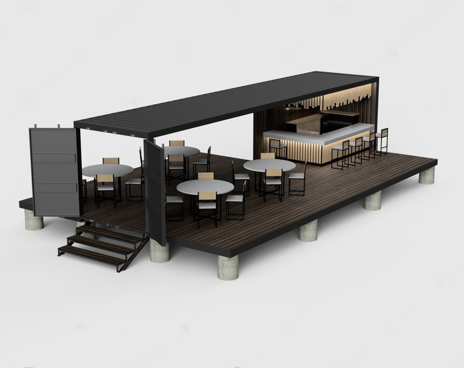 • Adaptable à tous les concepts : que vous souhaitiez un snack, un bar, un restaurant mobile ou un food court complet, les containers s’adaptent parfaitement à votre modèle.